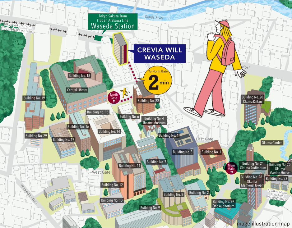 *These rendering images are based on construction diagram of planning stage.Actual product may vary.*From CREVIA WILL WASEDA of going on foot is calculated as 80m for 1minute.