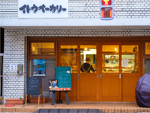 2018年オープンの新しいベーカリー。お店の前の看板に本日のオススメが書かれたり、天候の悪い日は割引になることも。