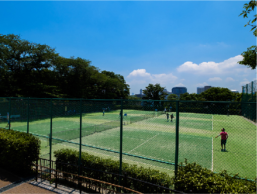 約30,000㎡の広大な敷地に、芝生広場や噴水池、散策路などが整備され、テニスやフットサルも楽しめる。