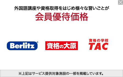 入居者の方は、グルメやショッピング、リゾートなど全国約20万箇所以上の施設やサービスが会員優待価格で利用できます。